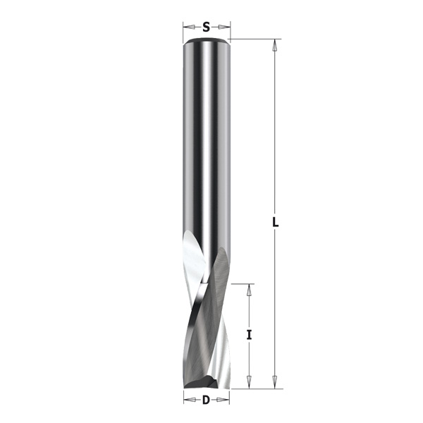 Massiv HM fres med spesialsliping som gir en meget fin overflate i aluminium, pvc, plast, kunststoff etc. Positiv spiral som drar sponen opp og gir en perfekt kant på undersiden